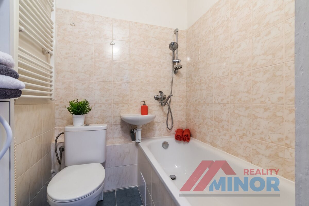 Dovolujeme si Vám exklusivně nabídnout pronájem bytu 1 + 1 o velikosti 30m2. Byt sestává z vstupní předsíně s vestavěnými skříňkami, kuchyně s kuchyňskou linkou, pračkou a velkou vestavěnou skříní, pokoje a koupelny s WC. K bytu náleží sklep. Velkým benefitem bytu je výborná občanská vybavenost v bezprostřední blízkosti domu, bezproblémová dopravní dostupnost na rychlostní silnici D7 a široké sportovní možnosti v této atraktivní lokalitě. Cena za pronájem bytu činí 10.000,– kč za měsíc. Záloha na poplatky spojené s užíváním bytu pro jednu osobu činí 1.850,– kč měsíčně, pro dvě osoby 2.100,– Kč měsíčně. Byt je vhodný maximálně pro dvě osoby. Elektrická energie se převádí na nájemce. Pronájem tohoto bytu Vám velmi vřele doporučuji.